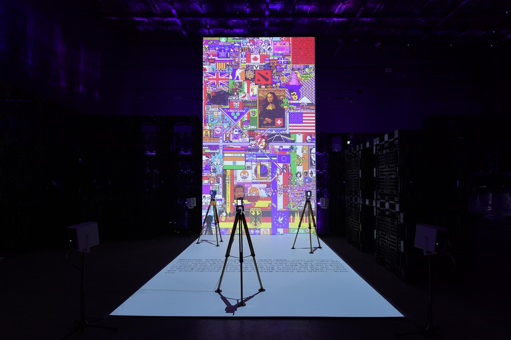 ‘MetaPixels’ by Collective Protorm, composed of Seung-beom Kim and Hunita Kim, is an installation work that uses cameras to send messages to the pixels of digital images.
